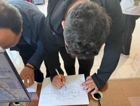 在棘洪滩水库水厂,观摩团实地参观了第一水厂的水处理工艺全流程,通过参观取水口、沉淀池、过滤池、消毒间、清水池及中控调度中心,工作人员以“工艺全流程沉浸式观摩+关键岗位实战化研讨”的立体化学习模式,重点介绍了水厂在生产流程、工艺优化、能耗管控、技术创新、安全管理中的创新应用。在关键岗位现场,党员骨干与一线员工围绕设备维护、应急预案等展开“点对点”研讨,为后续党建联建、技术攻关奠定基础。 “按图索骥”提升本领