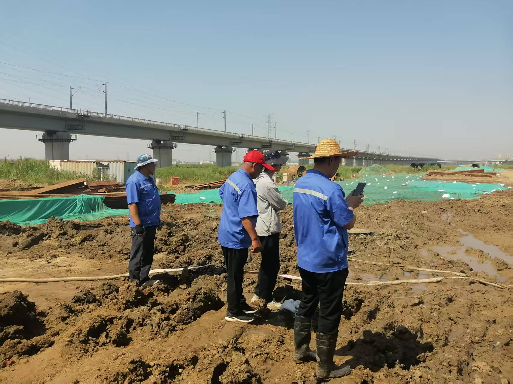 6月10日清晨,管线维护处巡线员刘赞刚进行管线巡查,行至大沽河管桥西侧时,他发现路基边坡有漏水迹象,立即上报情况。上午9时许,管线维护处周兆鹏带领钟政良火速驱车赶赴现场。经确认,DN1400复线管道出现明显漏水。时值夏季供水高峰期,这条管线承担着西海岸大部分区域的供水重任,情况刻不容缓。周兆鹏迅速上报公司,并联系生产经营部,紧急调整供水调度方案,全力保障居民用水不受影响。鉴于管线的重要性,公司当即决定连夜进行抢修。
