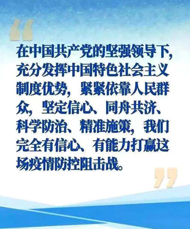 疫情就是命令,防控就是责任。面对当前防控新型冠状病毒感染肺炎的严峻斗争,公司党支部和党员纷纷表示,信心坚定,履职尽责,将充分发挥战斗堡垒和先锋模范作用,大家表示一定会众志成城、攻坚克难、齐心协力打赢这场疫情防控阻击战,使党旗在这一没有硝烟的战场上高高飘扬。 疫情在哪里,党员干部就要战斗在哪里。把做好疫情防控工作作为巩固拓展“不忘初心、牢记使命”主题教育成果的重要战场,坚定信心,振奋精神,迎难而上,我们就一定能守护好人民群众的生命安全和身体健康。