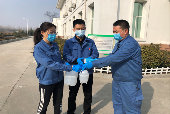 公司党员购置口罩、消毒液、横幅等防疫物资。为全体值守值班人员配发了防护口罩,在各水厂、泵站配备了测量体温仪器和消毒液等防疫物资,众志成城,共抗疫情。