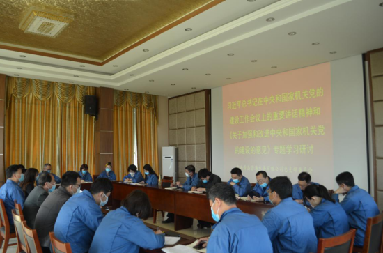 4月20日上午,我支部组织全体党员开展了习近平总书记在中央和国家机关党的建设工作会议上的重要讲话精神和《关于加强和改进中央和国家机关党的建设的意见》专题学习研讨活动。  党支部书记张立军、副书记尹贤友两位同志带领党员开展了专题学习研讨,首先带领党员开展了集体学习,传达了习总书记重要讲话精神以及《意见》有关内容,要求党员原原本本学习,深刻领会精神实质,把思想行动统一到以习近平同志为核心的党中央决策部署上来。其次,组织参会人员开展了研讨发言,参与党员依次发表了个人意见,进行了充分研究讨论。会议一致认为,要坚决把思想和行动统一到讲话精神上来,统一到党中央的各项决策部署上来,坚决以习近平新时代中国特色社会主义思想为指导,增强“四个意识”,坚定“四个自信”,做到“两个维护”,全力以赴抓好各项工作落实,全面提高党建质量和水平。  张立军书记提出下一步工作要求,一是要严明党的政治纪律和政治规矩,加强党员学习教育,领导干部做好表率,强化自我约束,加强工作监督。二是要加强思想政治工作,健全谈心谈话制度,领导班子成员之间、班子成员和干部职工之间要经常性开展谈心谈话,不断提高思想政治水平。三是要不断提高党的群团工作水平,完善党建带群建制度机制。定期研究部署群团工作,加强公司工会、共青团、妇女组织等群团组织的领导,推动群团组织依法依章程开展工作,活动充分发挥群团组织桥梁纽带作用。四是要提高党建工作水平,立足公司实际情况策划年度工作方案,创新充实三会一课、主题党日等活动载体,树立党员先进典型,注重发挥身边榜样的示范带头作用,全面提升党建工作效果。应加大抓党建工作的权重,考虑将党建工作情况列入公司绩效考核。 另外,须不断加强党建与生产经营深度融合,坚持和加强党的全面领导,坚持党要管党、全面从严治党,以党的政治建设为统领,全面落实党建责任制,坚持班子带头、以上率下,充分发挥党组织战斗堡垒作用和党员先锋模范作用,促进党建工作落地生根,企业生产经营积极发展。