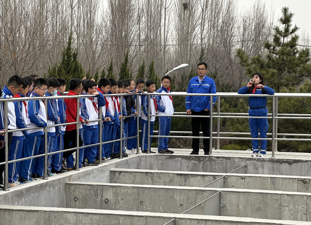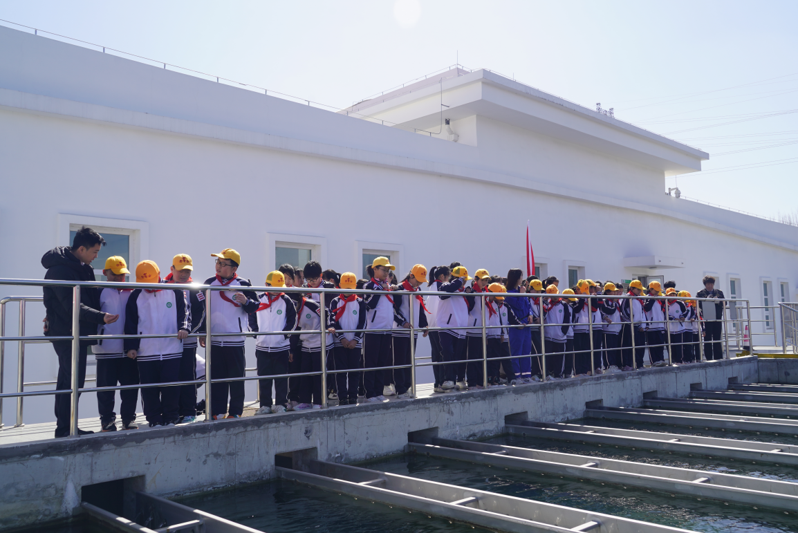 (图为育英小学学生参观红石崖水厂沉淀池)