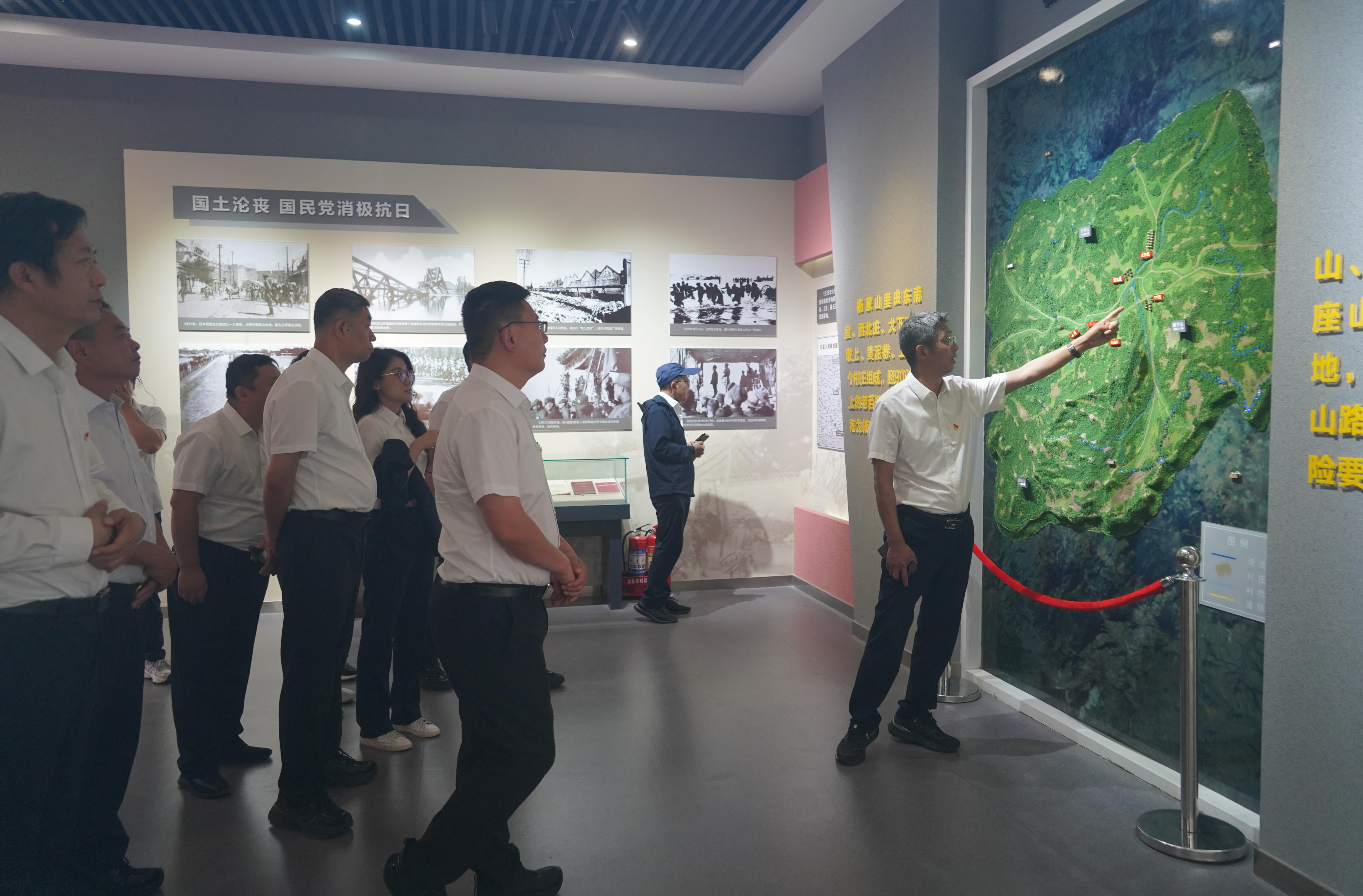 在碧海水务党支部书记、董事长朱长青的带领下,全体人员步入杨家山里红色教育基地展厅。朱书记化身“讲解员”,驻足在泛黄的历史图片前,以时间为轴,亲自为大家讲述杨家山里军民在抗日战争时期浴血奋战的悲壮历程;在珍贵的文献手稿旁,他用质朴的语言,解读革命先辈在艰难环境中坚定信仰的伟大精神;生动还原抗日战争时期军民同心构筑钢铁防线、以赤诚丹心守护家国安宁的壮阔场景。