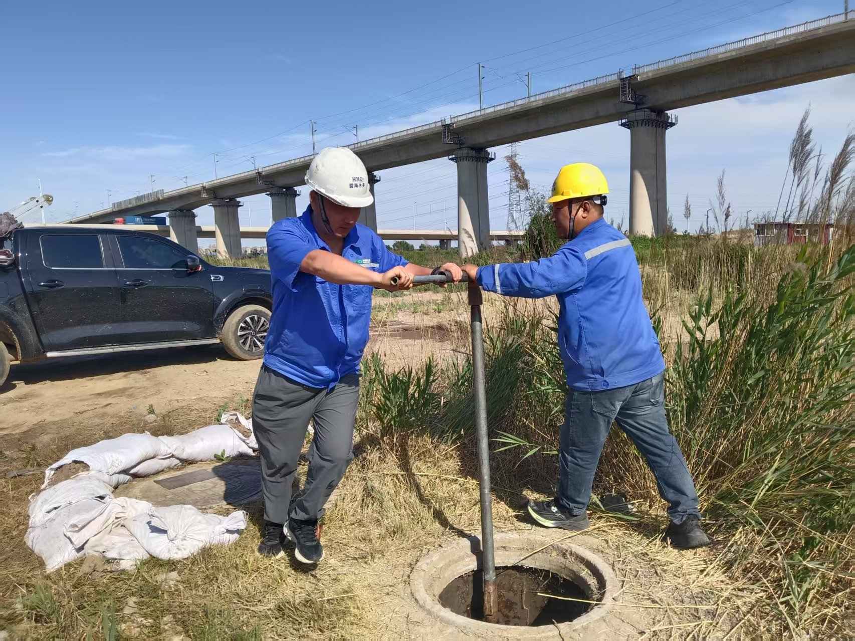 6月10日清晨,管线维护处巡线员刘赞刚进行管线巡查,行至大沽河管桥西侧时,他发现路基边坡有漏水迹象,立即上报情况。上午9时许,管线维护处周兆鹏带领钟政良火速驱车赶赴现场。经确认,DN1400复线管道出现明显漏水。时值夏季供水高峰期,这条管线承担着西海岸大部分区域的供水重任,情况刻不容缓。周兆鹏迅速上报公司,并联系生产经营部,紧急调整供水调度方案,全力保障居民用水不受影响。鉴于管线的重要性,公司当即决定连夜进行抢修。