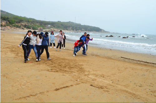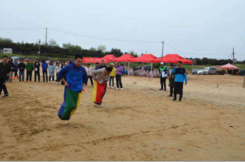 开场结束后带领大家来到沙滩的空地上,本着“友谊第一,比赛第二”的原则开展了激烈而欢乐的两队比拼趣味运动。