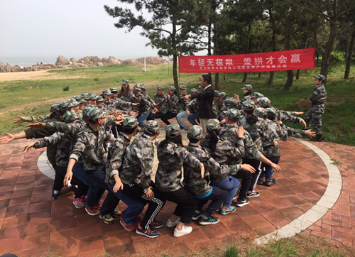 (图为全体人员正在进行团队建设活动)